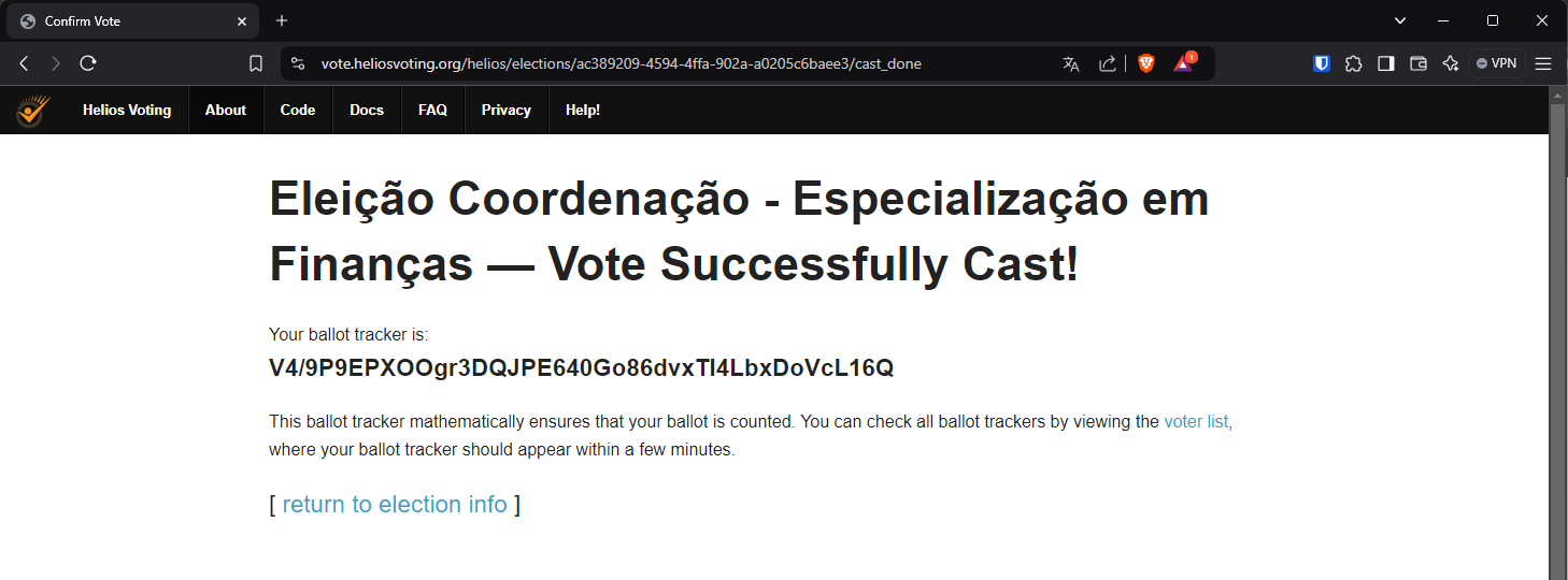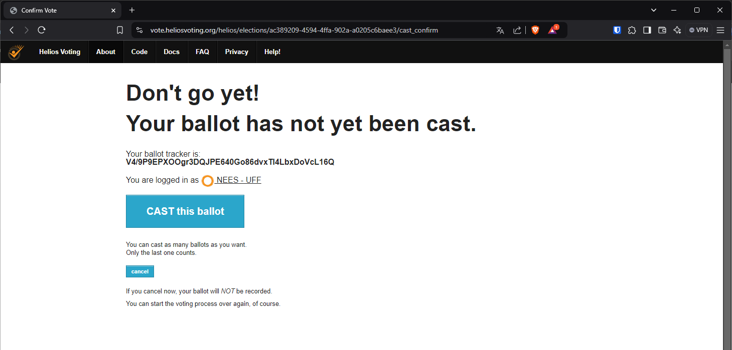 Por fim, confirme o seu voto clicando na opção Cast This ballot: